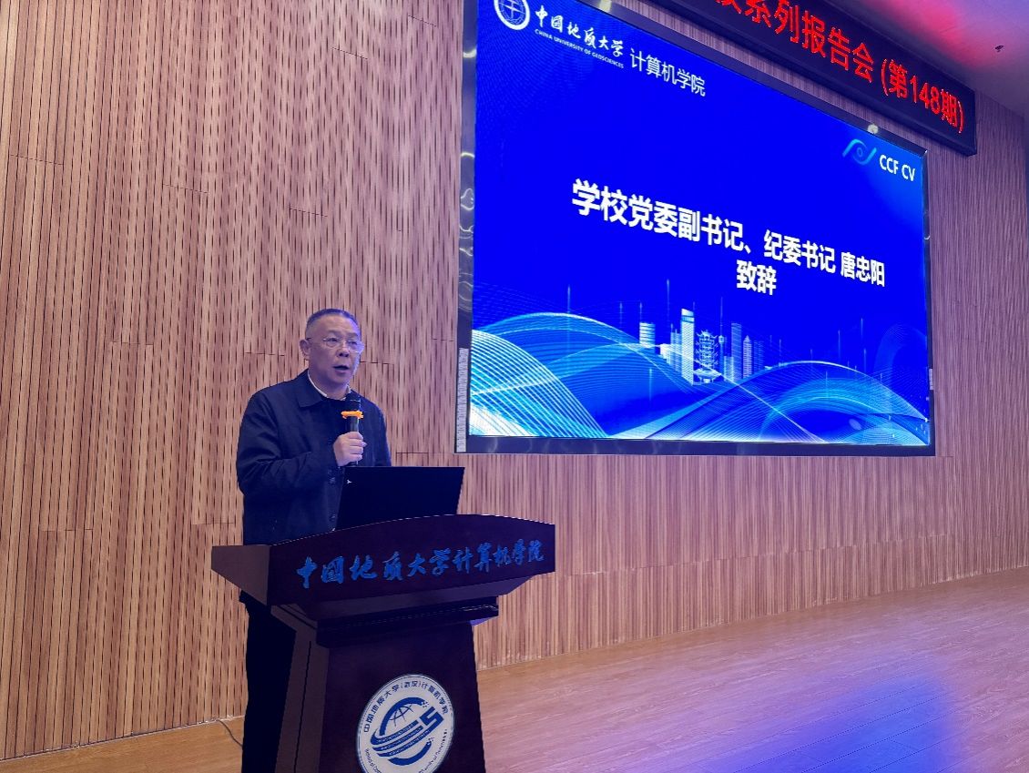 2025年11月15日,中国地质大学(武汉)计算机学院迎来建院20周年,由中国计算机学会计算机视觉专委会(CCF-CV)主办、计算机学院承办的第148期“CCF-CV走进高校”系列报告会——“智能感知与计算机视觉前沿论坛”在中国地质大学(武汉)未来城校区计算机学院126报告厅成功举办。本次活动作为中国地质大学(武汉)计算机学院建院20周年暨计算机学科建设40周年系列学术活动的首场报告会,吸引了来自武汉大学、华中农业大学、华中师范大学、地大等多所兄弟高校的200多名师生踊跃参加,共同见证学院在人工智能与计算机视觉领域的发展成果与学术影响力,标志着院庆系列学术交流活动的正式启幕。中国地质大学(武汉)计算机学院院庆系列学术活动由院长张洪艳教授担任总执行主席,智能系刘袁缘教授担任本次报告会的执行主席,蒋良孝教授、黄绍广教授、孙琨副教授等智能系教师担任此次报告会执行委员。