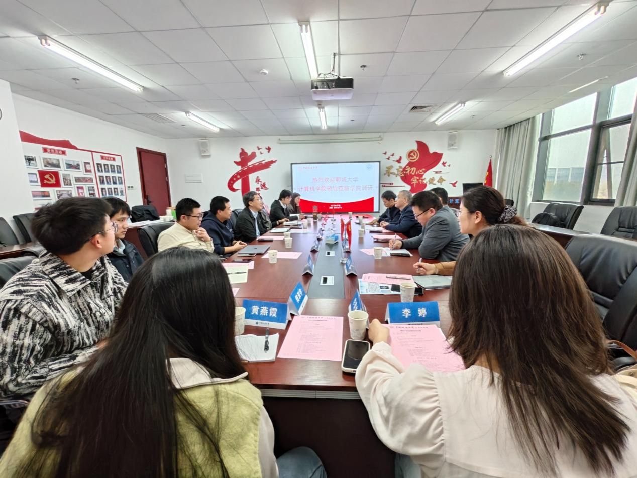 11月7日上午,聊城大学计算机学院党委副书记兼院长贾仰理、教务处副处长张绪涛、计算机学院副院长李成友、教务处教学质量管理中心副主任耿庆军、计算机学院软件工程系主任韩玉艳、专业教学实验中心主任凌海云、工程教育专业认证办公室主任李德奎一行7人来我院交流访问。学院副院长刘刚、各系室主任、教师代表参会。刘刚副院长主持交流会。