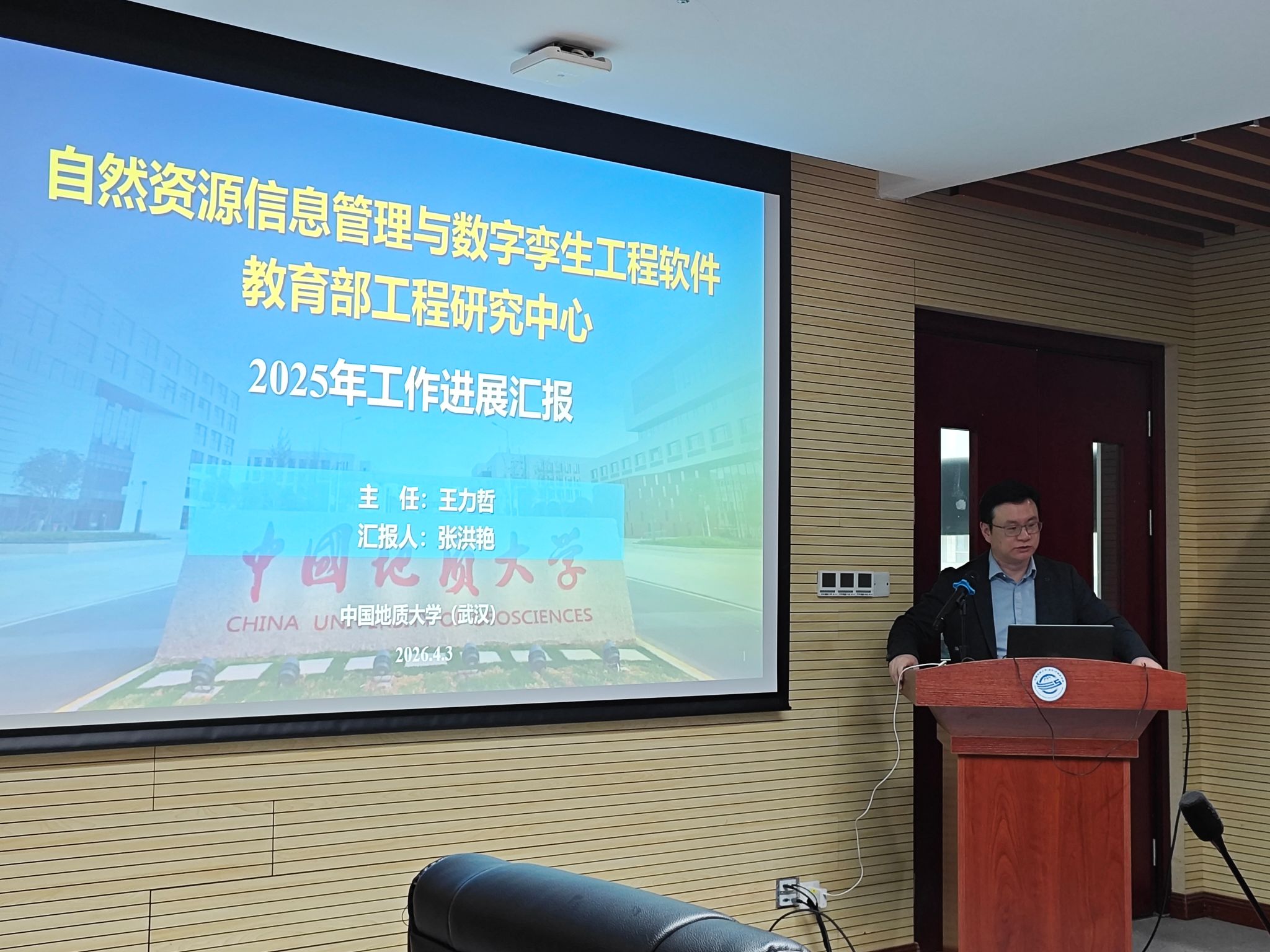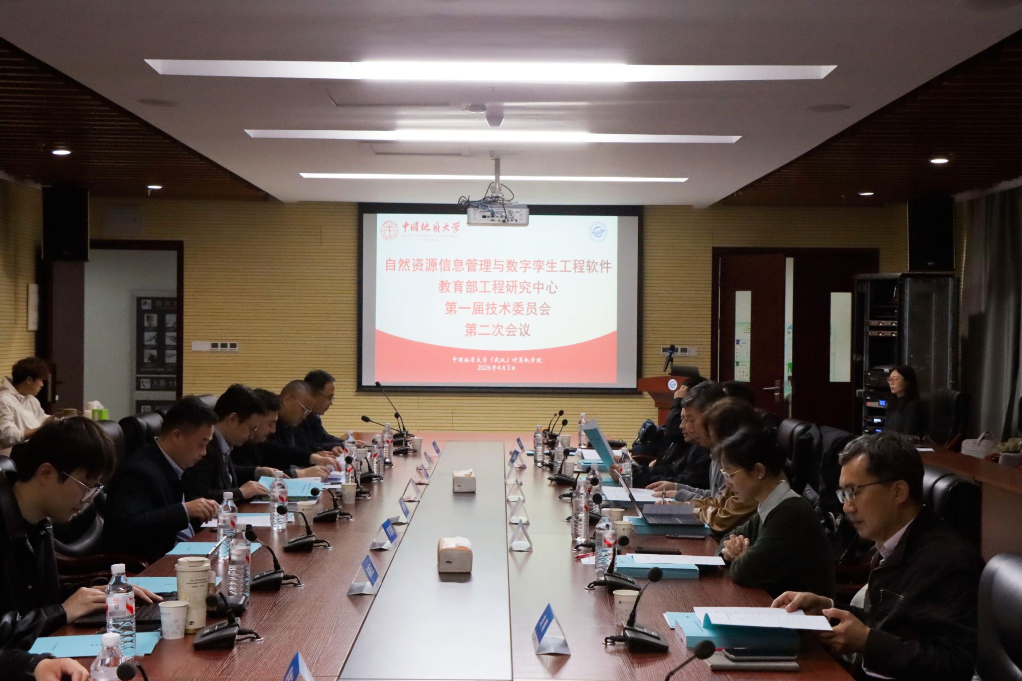 2026年4月3日,自然资源信息管理与数字孪生工程软件教育部工程研究中心(以下简称“工程研究中心”)第一届技术委员会第二次会议在中国地质大学(武汉)未来城校区计算机学院召开。会议采用线上线下相结合的形式,工程研究中心技术委员会主任委员、武汉大学张良培教授,副主任委员、西南交通大学朱庆教授,委员北京大学金芝教授、航天宏图信息技术股份有限公司副总裁白晓飞、武汉大学沈焕锋教授、武汉大学谢晓园教授、中国地质大学(武汉)张洪艳教授、委员兼秘书刘刚教授,以及线上参会的技术委员会委员、工程研究中心副主任、各研究方向负责人和科研骨干人员20余人出席会议,会议开幕式由计算机学院副院长陈占龙主持,科学技术发展院副院长李鹏飞出席开幕式并发表致辞。