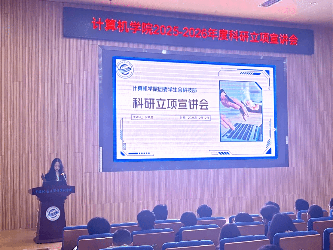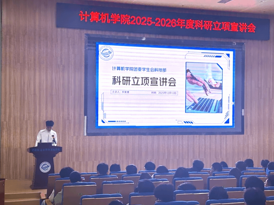 12月12日,计算机学院团委学生会科技部面向2024级本科生成功举办本科生科研立项专题宣讲会。本次宣讲旨在为2024级同学系统介绍学院科研立项的参与机制、流程规范与实践价值,搭建本科生接触科研前沿、融入导师团队、开展学术实践的重要平台,引导学生在项目实践中锻炼创新思维、提升科研素养,为未来学术发展与职业规划奠定坚实基础。2024级辅导员刘佳丹以及2024级本科生参与此次宣讲。
