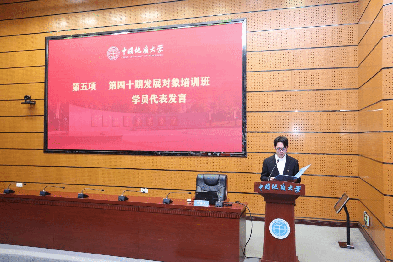 授课老师讲授专题党课,校党委常委、党委组织部部长陈文武以《学思践悟明方向·笃行实干担使命——新时代高校青年马克思主义者成长之路》为题,从多维度阐述了新时代高校马克思主义者的深刻内涵,系统讲解了党的性质宗旨与初心使命。她强调,要读原著、学原文、悟原理,在实践中升华认知,在反思中坚定信仰。勉励地大学子坚定马克思主义信仰,将理论学习与社会实践相结合,努力成长为具有理想的信仰者、深谙理论的修德者、不懈奋斗的践行者,在实现中国梦的生动实践中书写人生华章。中铁十一局集一公司党委宣传部部长沈正华作《红专并进·奋勇登高,争做最美奋斗者》专题报告。他以“从屈辱到登高再到高歌”的民族复兴历程为脉络,讲述了企业投身国家重大工程的实践,极大地激发了学员们的家国情怀与使命担当。