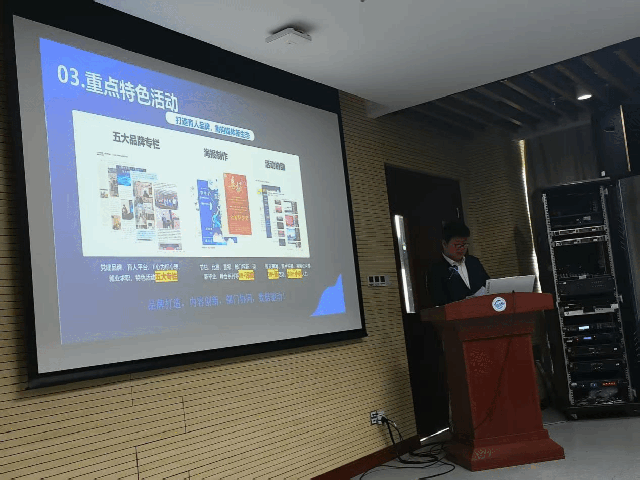 团委学生会全媒体中心以“智慧媒体新生态,创新传播向未来”为主题,展示了部门成员分布与具体分工,并通过数据与图片展示了海报制作、暑期夏令营、品牌专栏等工作成果。未来,他们将重点强化原创内容生产,深化跨校区联动,不断推动工作创新发展。