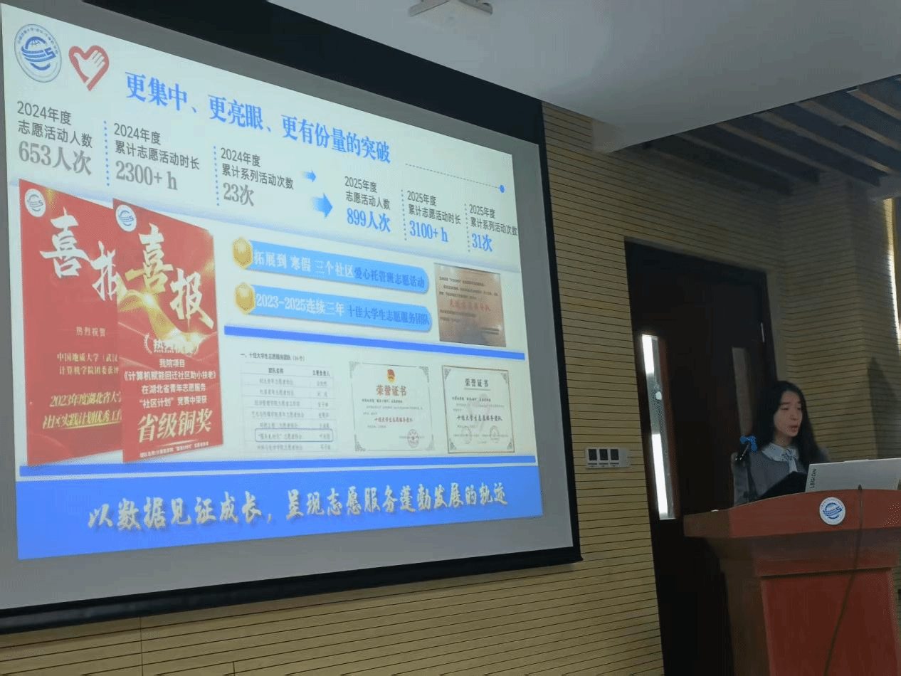 团委学生会志愿者协会、信息调研与权益服务中心以“活动拼盘到生态体系”为线索,通过数据展示志愿活动人数、志愿活动时长、累计系列活动次数等工作提升成效。他们提出构建志愿服务生态体系,持续完善PDCA管理闭环与数据驱动机制,不断提升志愿服务质量。