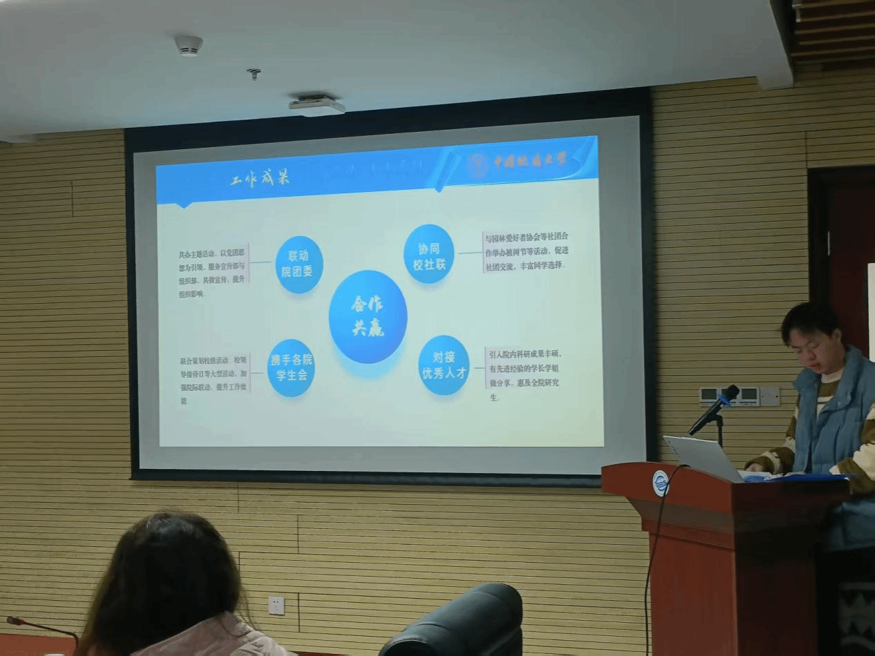 研究生会学术部展示了第三十六届研究生科技论文报告会、“开源论坛”系列学术交流活动、“四维研学空间”建设等活动成果,推动学院学术氛围建设方面取得了积极成效。同时,他们反思不足,总结经验,并为下一步工作制定明确规划。